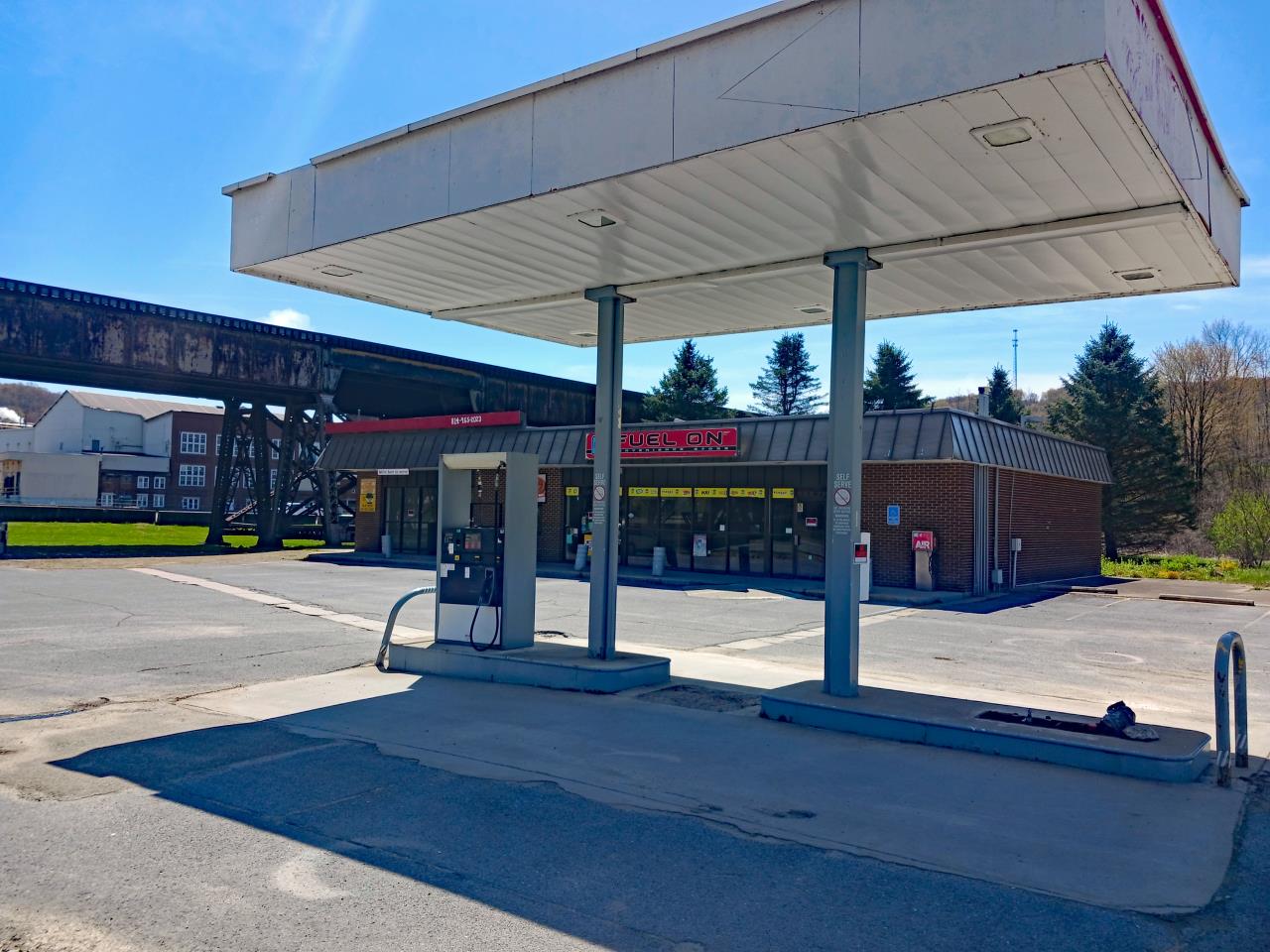 Former Fuel On with a +/-3,685 SF building with paved/lighted drive thru, 30’ x 20’ canopy with 1 fuel pump, situated on 1.5 acres. SOLD: $144,562